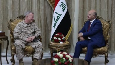 رئیس جمهور عراق در دیدار با فرمانده ستاد مرکزی امریکا خواستار کاهش تنش در منطقه شد