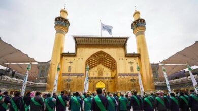 گزارش تصویری؛شادی و سرور خادمان حرم امیرالمؤمنین(ع) در روز ولادت سیدالشهدا(ع)خادمان حرم مطهر امیرالمؤمنین علی(ع) در روز ولادت امام حسین(ع) فرزند ایشان، با خواندن سرودهای خاص و اهدای گل به زائران این مناسبت را جشن گرفتند.