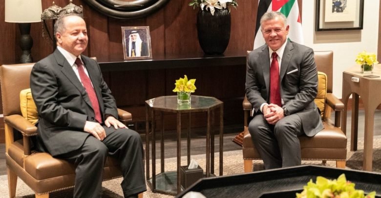 بارزانی در دیدار با پادشاه اردن در خصوص روابط دوجانبه عراق و اردن و راهکارهای گسترش این روابط به بحث و تبادل نظر پرداختند.