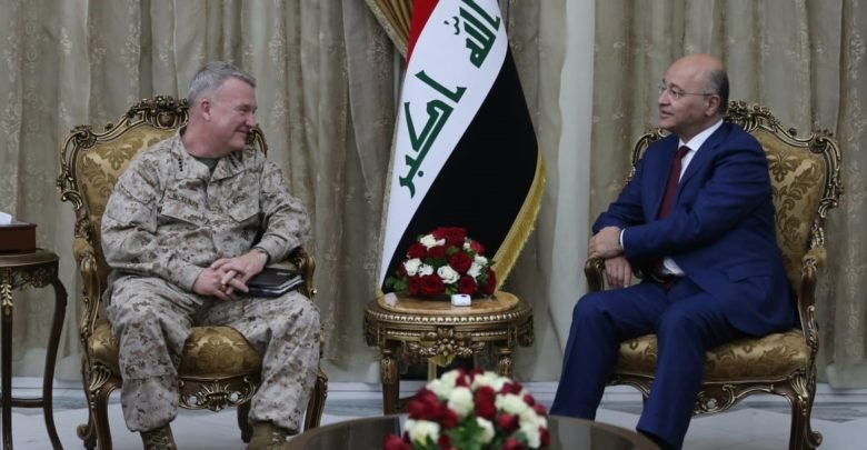 رئیس جمهور عراق در دیدار با فرمانده ستاد مرکزی امریکا خواستار کاهش تنش در منطقه شد