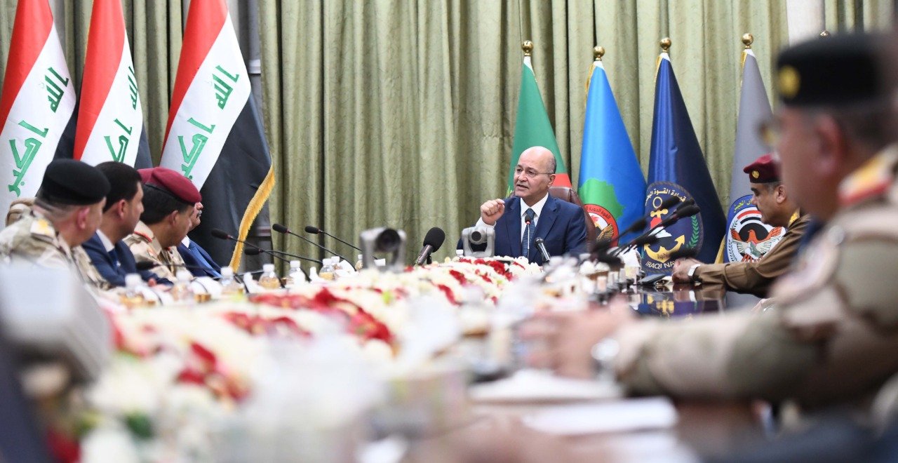 حضور رئیس جمهور عراق در مقر وزارت دفاع این کشور پس از آن انجام شد که «یوسف الناصری»، نائب رئیس جنبش النجباء در اظهاراتی ارتش عراق را «ارتشی مزدور» توصیف کرد و خواستار انحلال آن و واگذاری مسئولیت ارتش به حشد الشعبی شد.