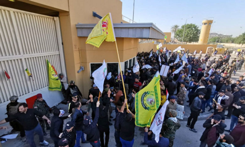 تجمع در اطراف سفارت امریکا در بغداد به تنش کشیده شد/ حزب الله عراق: هیچ تصمیمی برای تصرف سفارت امریکا نداریم + فیلم