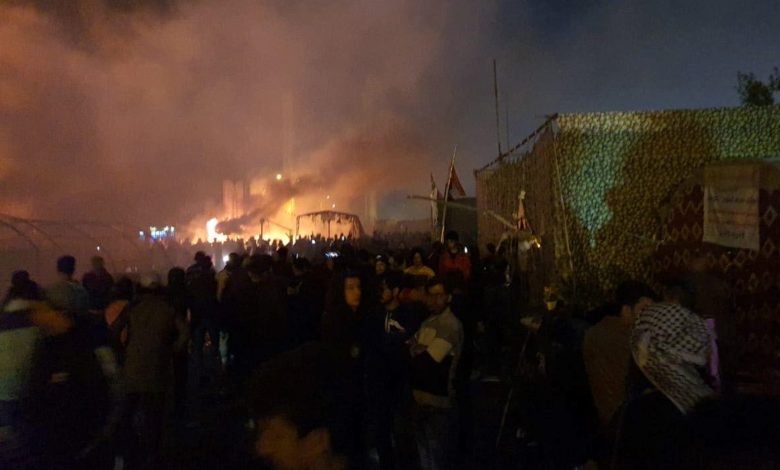 به گفته شاهدان عینی در پی این حمله معترضان از میدان متفرق شده و به خیابان های اطراف گریختند و پس از اندکی خیمه های تحصن کنندگان در میدان الحبوبی به آتش کشیده شد.