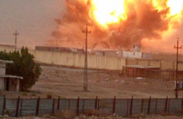 وقوع دو انفجار در اردوگاه نظامی صقر در جنوب بغداد+فیلم و تصاویر