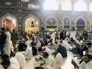 امسال به علت محدودیت های ناشی از شیوع کرونا کربلا میزبان زایران خارج از شهر نبود، اما مردم کربلا با حضور در حرم مراسم را به جای آوردند.