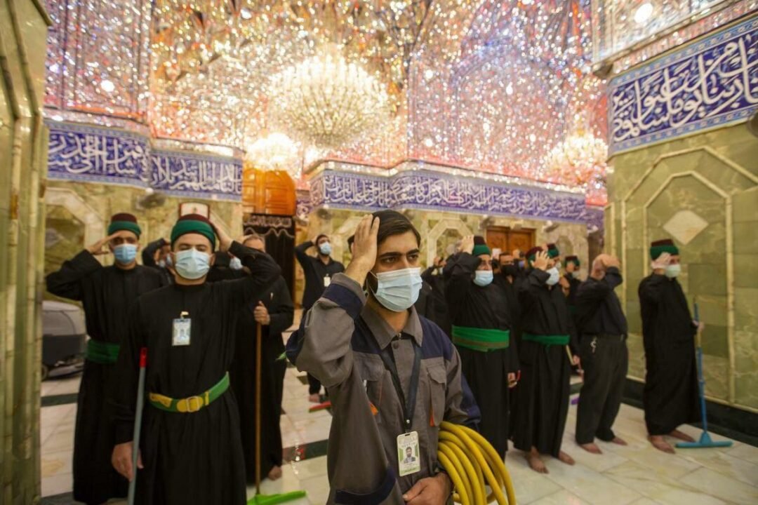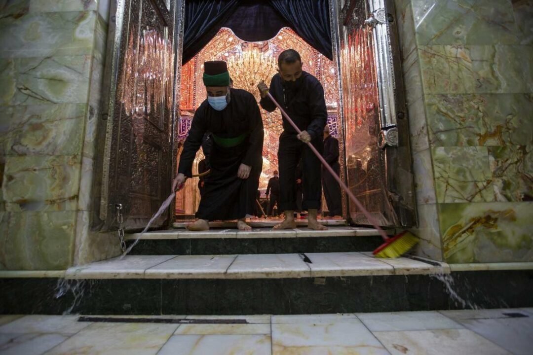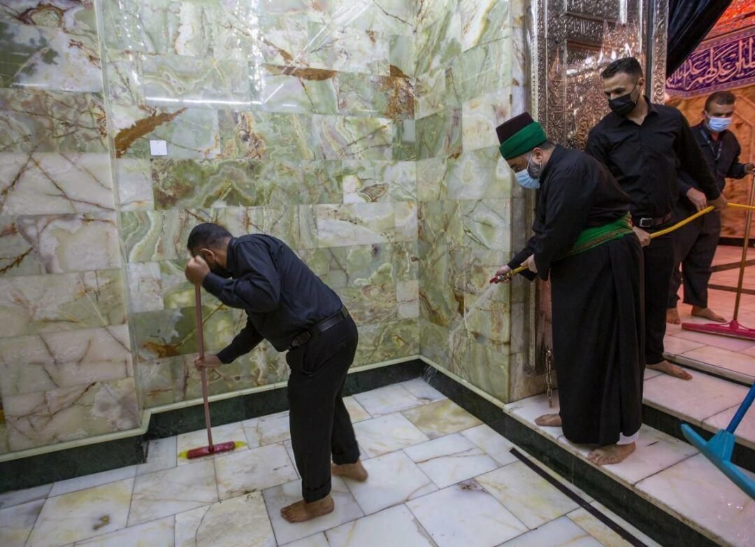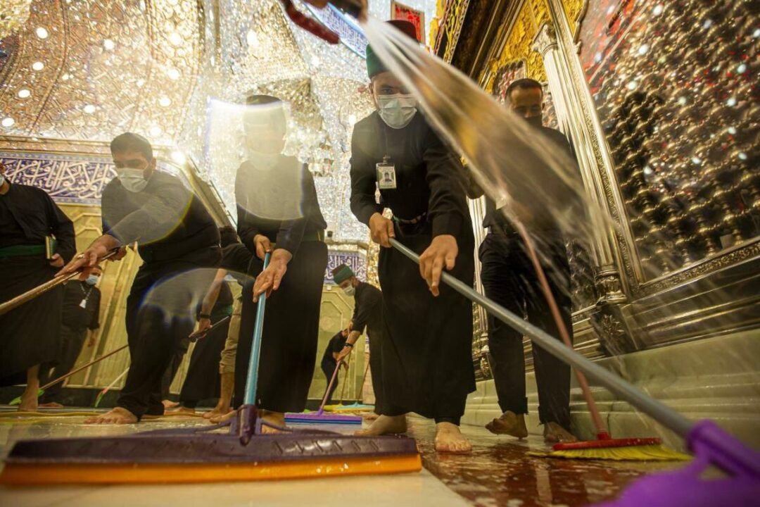 میدل ایست نیوز: بعد از برپایی مراسم دهم محرم، خادمان و کارکنان مرقد مطهر حضرت ابوالفضل العباس(ع) اقدام به شستن و ضدعفونی کردن این آستان قدسی کردند.