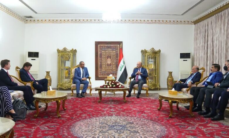 میدل ایست نیوز: «برهم صالح»، رئیس جمهور عراق، در جلسه ای با حضور وزرای دفاع و خارجه عراق با «جیمز کلیورلی»، وزیر مشاور در امور خاورمیانه بریتانیا، و «جیمز هیبی» وزیر نیروهای مسلح بریتانیا دیدار کرد.