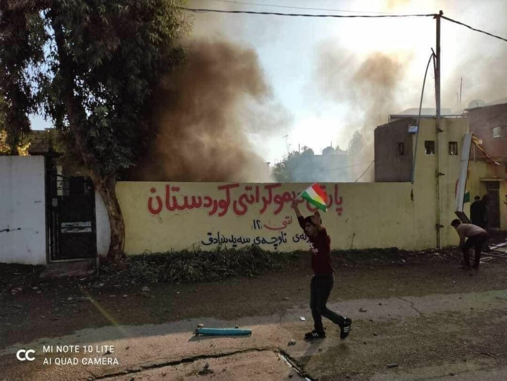 تظاهرات‌کنندگان روز گذشته نیز در اعتراض به بحران مالی، فساد مقامات دولتی اربیل و تاخیر در پرداخت حقوق کارمندان به مقر حزب دموکراتیک کردستان به رهبری «مسعود بارزانی» و اتحادیه میهنی در سلمیانیه حمله کرده و آن را به آتش کشیدند.