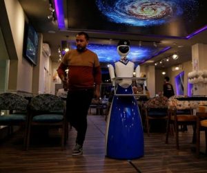 تصاویری از رستورانی در موصل با رباتهای گارسون