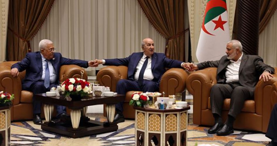 رئیس تشکیلات خودگردان فلسطین و رئیس دفتر سیاسی جنبش حماس پس از سالها، در الجزائر دیدار کردند.