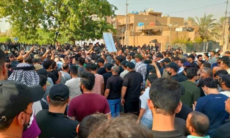 تظاهرات کنندگان مخالف قانون شکنی و آشوب در عراق، برای حمایت از مشروعیت و حفاظت از نهادهای حکومتی در نزدیکی منطقه خضراء تجمع کردند.