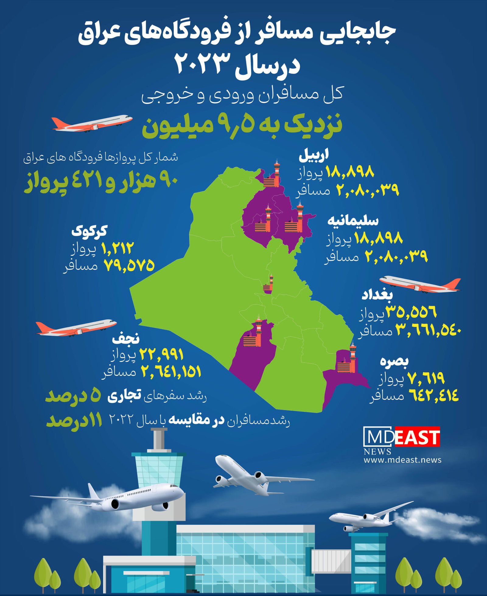 جابجایی مسافر از فرودگاه‌های عراق در سال 2023