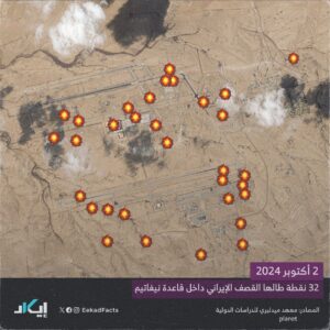 به گزارش موسسه تحقیقاتی «ایکاد»، براساس تازهترین تصاویر دریافتی از ماهواره “Planet” که توسط موسسه مطالعات بینالمللی «میدلبری» منتشر شده، 32 نقطه در این پایگاه آسیب دید.