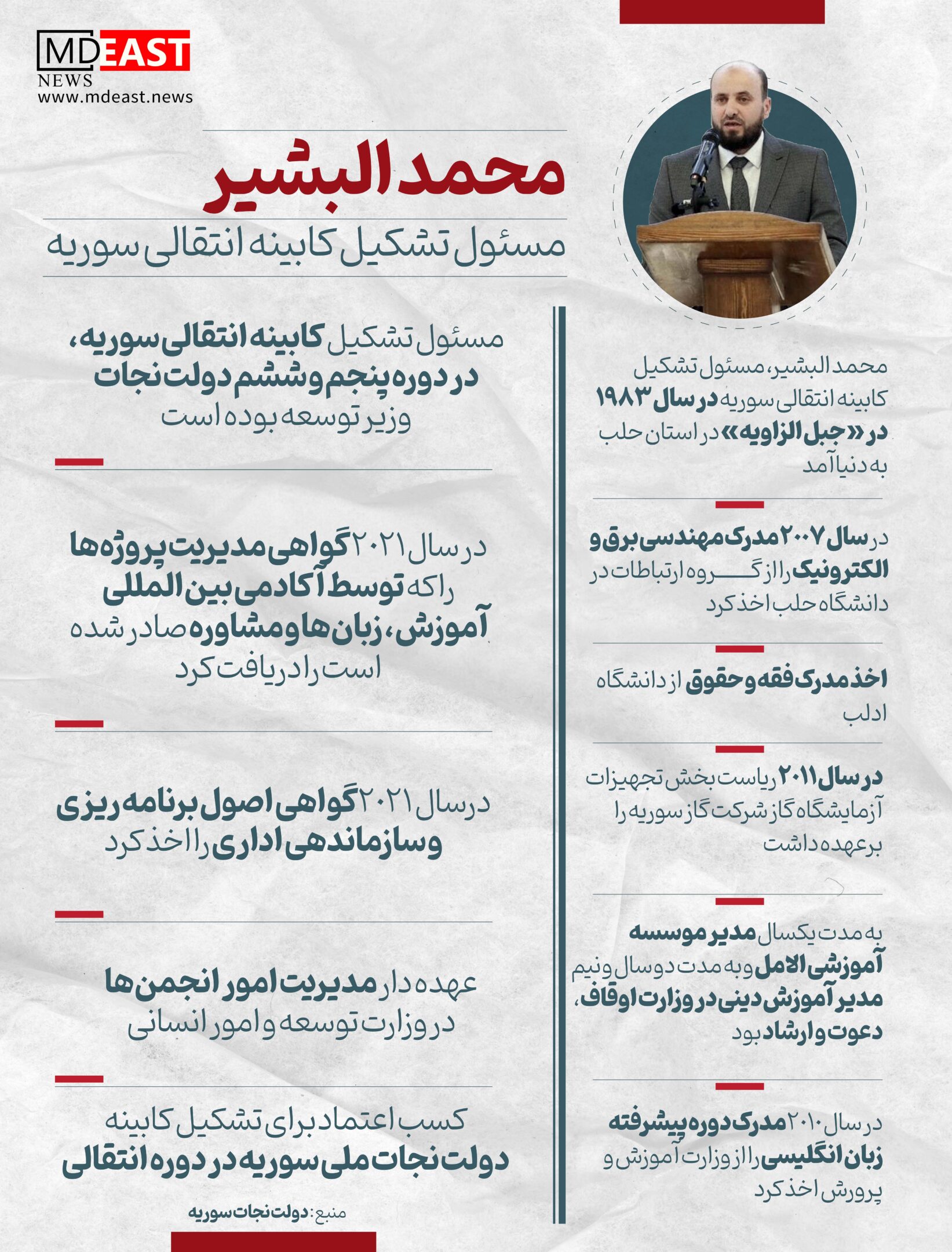 محمد البشیر مسئول تشکیل کابینه انتقالی سوریه کیست؟