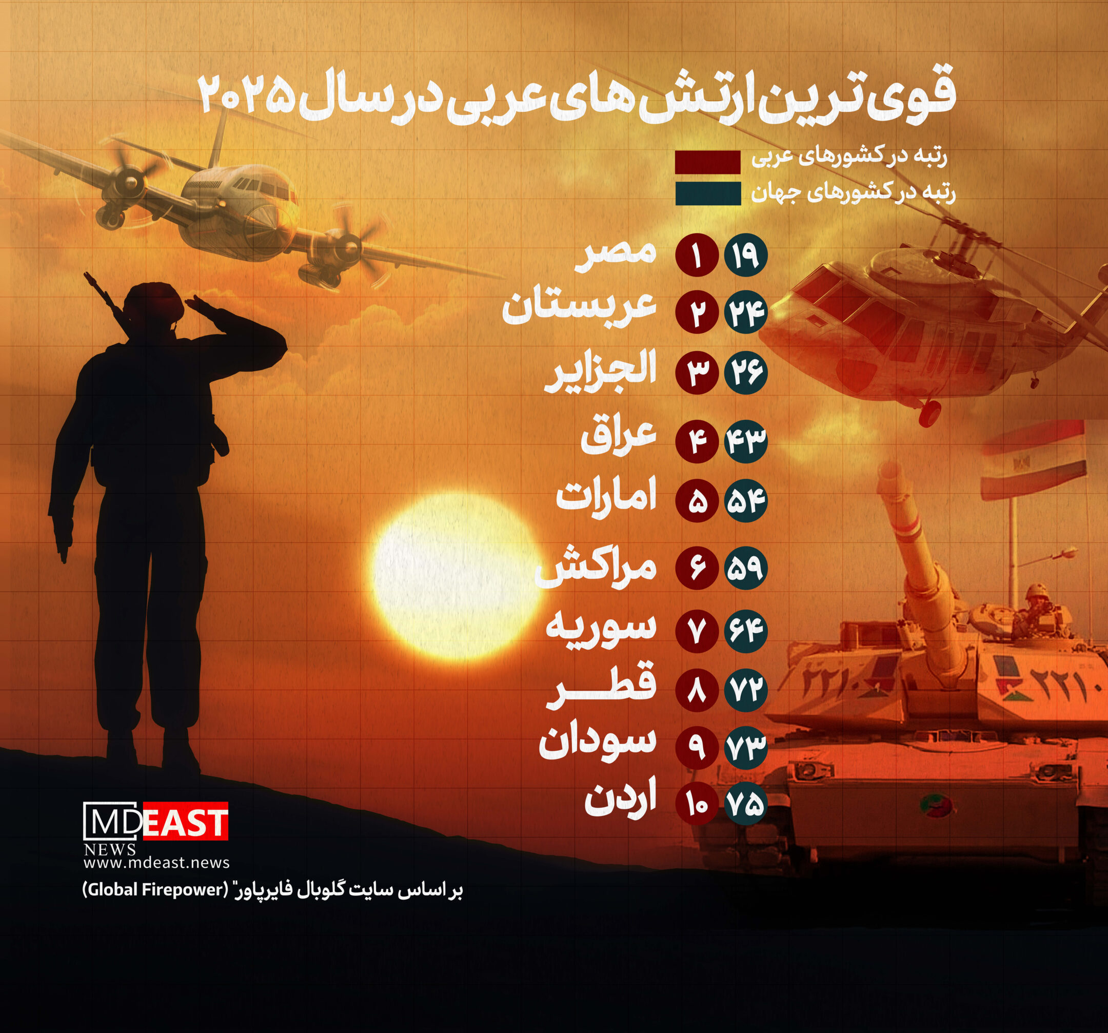 اینفوگرافیک اینفوگرافیک؛قویترین ارتشهای عربی در سال 2025 2025-06-09 | 11:52 برچسب هاارتش های عربی قوی ترین ارتش ها کشورهای عربی کپی لینک کوتاه لینک کپی شد 2025-06-09 | 11:52 اشتراک گذاری فیس بوک X لینکدین پینترست رددیت اسکایپ پیام رسان پیام رسان واتس آپ تلگرام وایبر اشتراک گذاری از طریق ایمیل چاپ