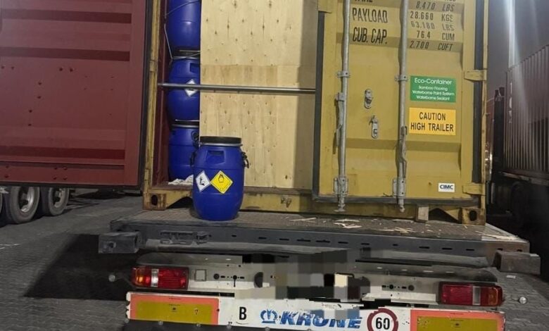 به گزارش روودا، سازمان گذرگاه‌های عراق در بیانیه‌ای اعلام کرد مدیریت بندر ام‌قصر دو کانتینر را در خارج از محوطه گمرک بازرسی کرد که حاوی ماده شیمیایی پودری شکل بودند. این ماده شیمیایی در بشکه‌هایی آماده برای قاچاق به داخل کشور بود ولی برخلاف اظهارات اولیه صاحبان محموله، هیچ گونه مجوز امنیتی و مجوز واردات نداشت.