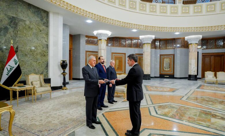 رئیس جمهور عراق در مراسم دریافت استوارنامه سفرای جدید چند کشور بر تلاش مستمر عراق برای برقراری روابط متوازن با کشورهای جهان مبتنی بر منافع مشترک تاکید کرد.