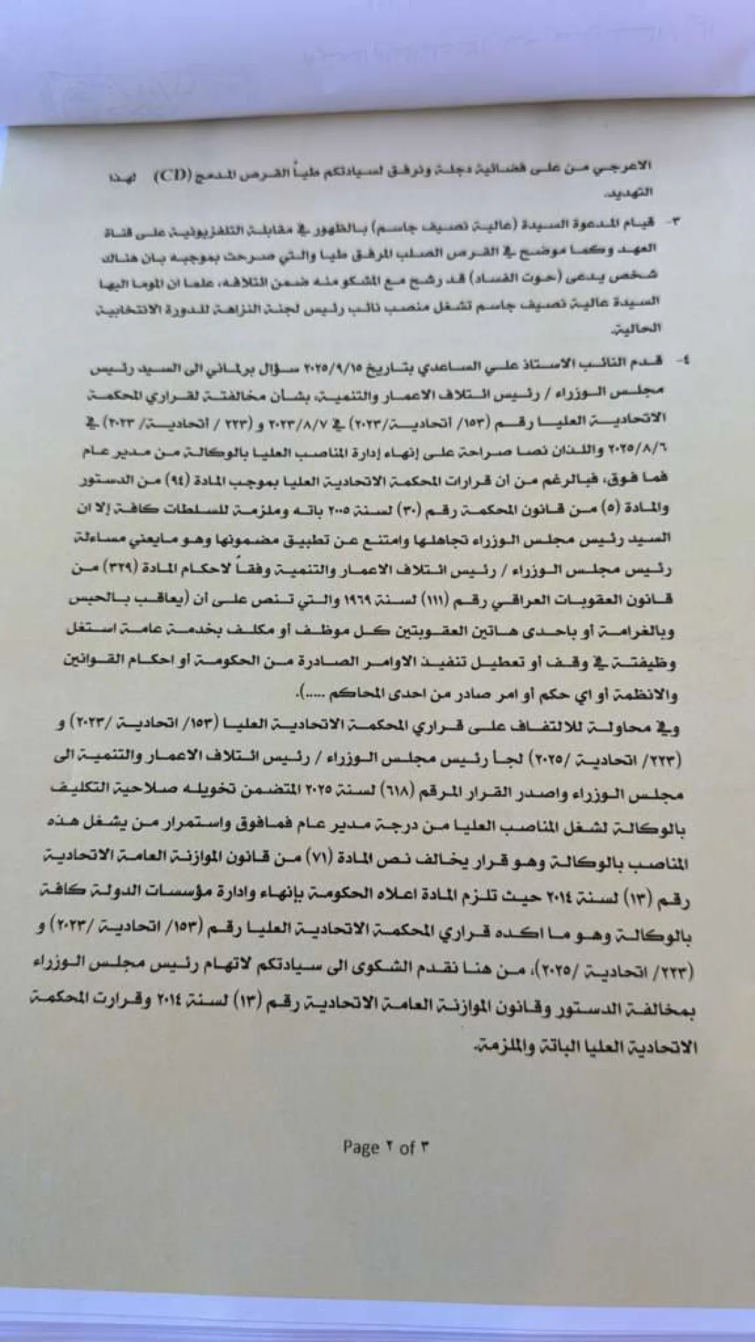 شاکیان همچنین خواستار رسیدگی به تخلف السودانی از حکم صادره از دادگاه فدرال عالی شدند؛ حکمی که بهصراحت بر لزوم پایان دادن به اداره مناصب عالی بهصورت سرپرستی تأکید دارد.