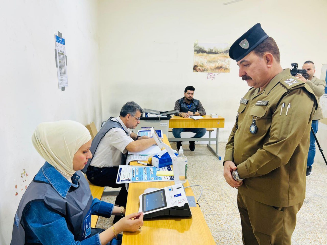 نیروهای امنیتی و نظامی عراق برای ثبت رأی خود در ششمین دور از انتخابات پارلمانی عراق در مراکز انتخاباتی حضور یافتند.