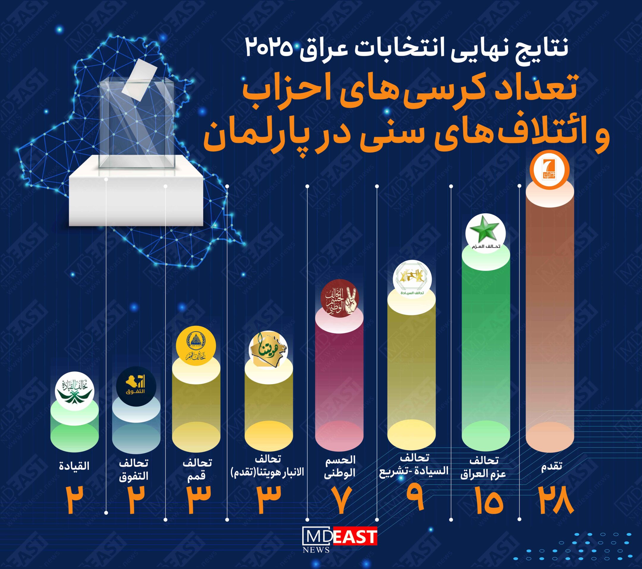 تعداد کرسی‌های احزاب و ائتلاف‌های سُنی در پارلمان جدید عراق