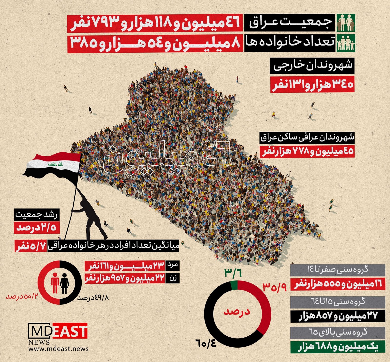 جمعیت عراق؛ 46 میلیون و 118 هزار و 793 نفر