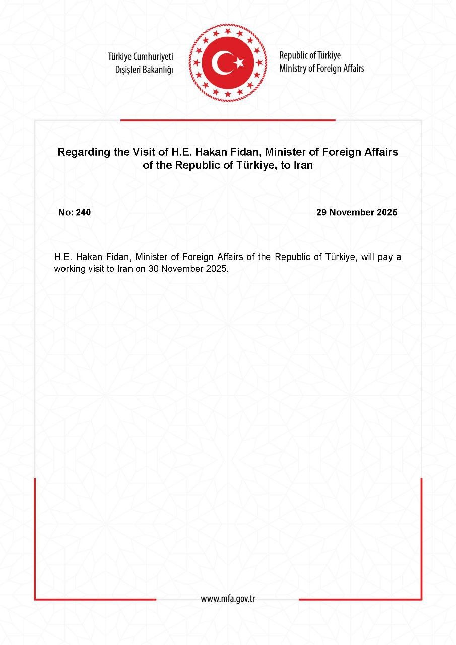 منابع دیپلماتیک اعلام کردند که هاکان فیدان برای گفت‌وگوهای بلندپایه درباره امنیت، تجارت و بحران‌های منطقه‌ای به ایران سفر می‌کند.
