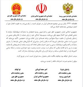 سفرای ایران، روسیه و چین در سازمان ملل متحد نامه‌ای مشترک به رئیس شورای امنیت و دبیرکل سازمان ملل درباره قطعنامه 2231 ارسال کردند.