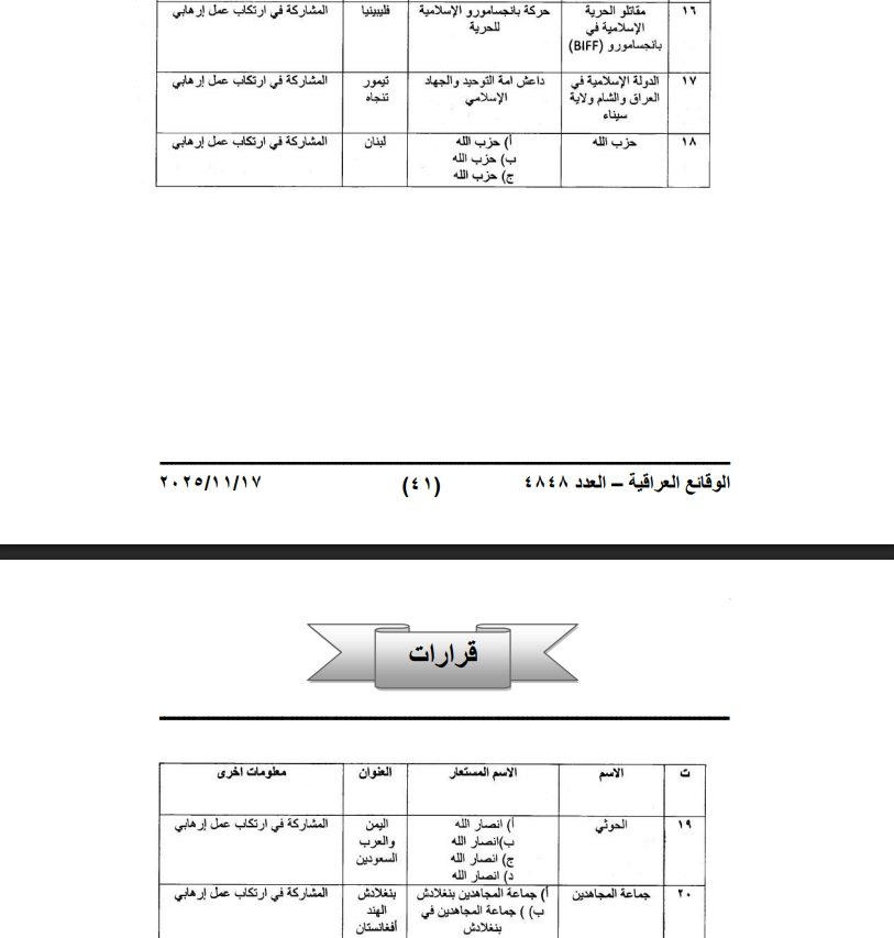 عراق رسما درج نام انصارالله و حزب‌الله در گروه‌های تروریستی را اصلاح کرد + سند