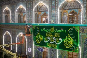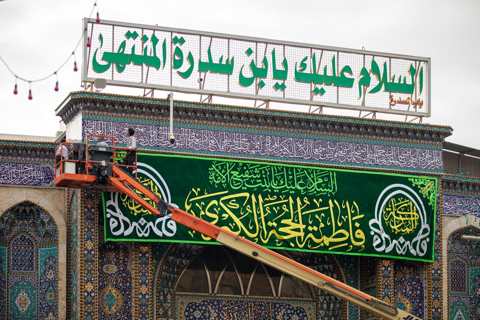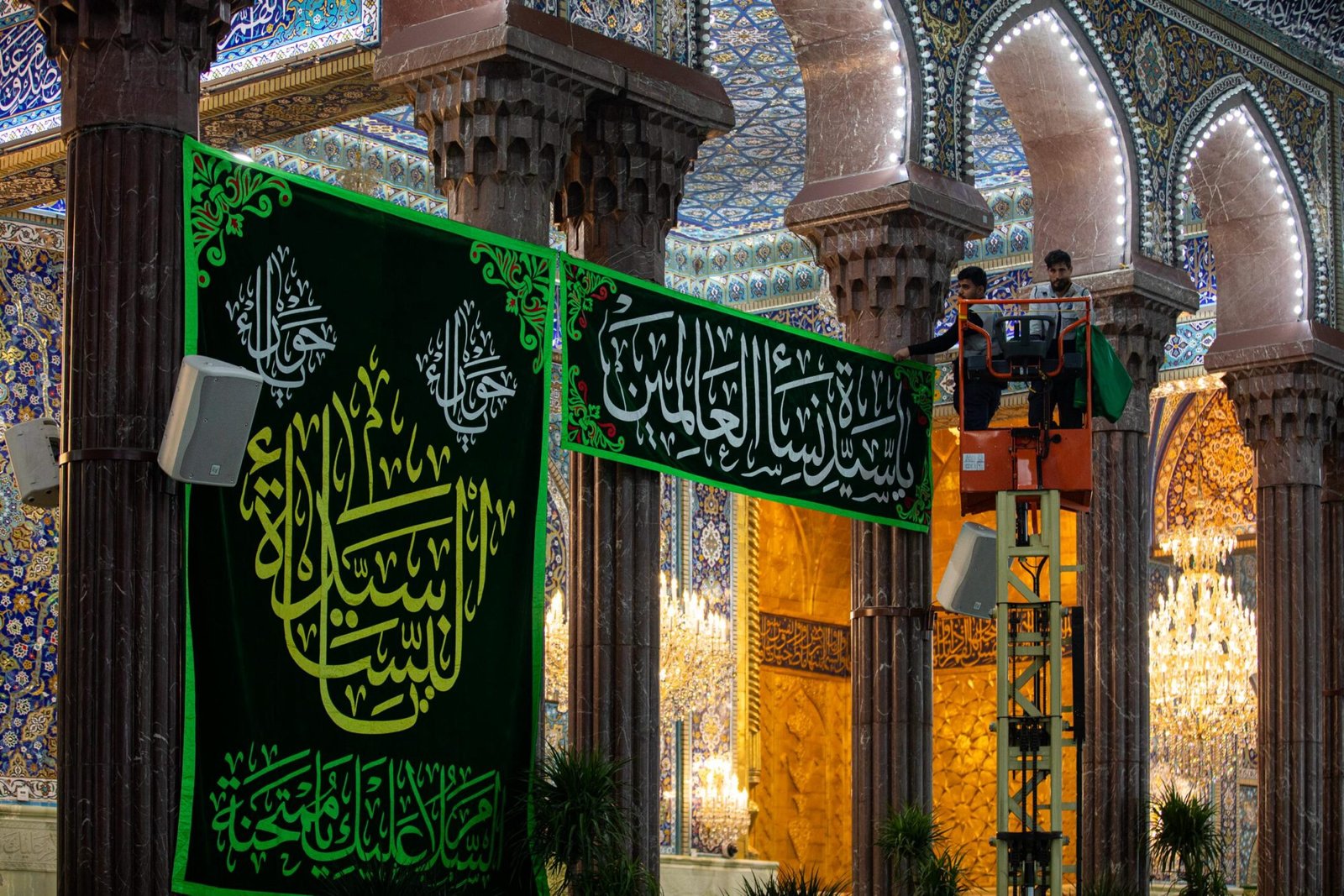 در آستانه ولادت حضرت فاطمه (س)، حرم امام حسین (ع) با نصب کتبیه‌ها و پرچم‌هایی مزین به نام ایشان آراسته شد.