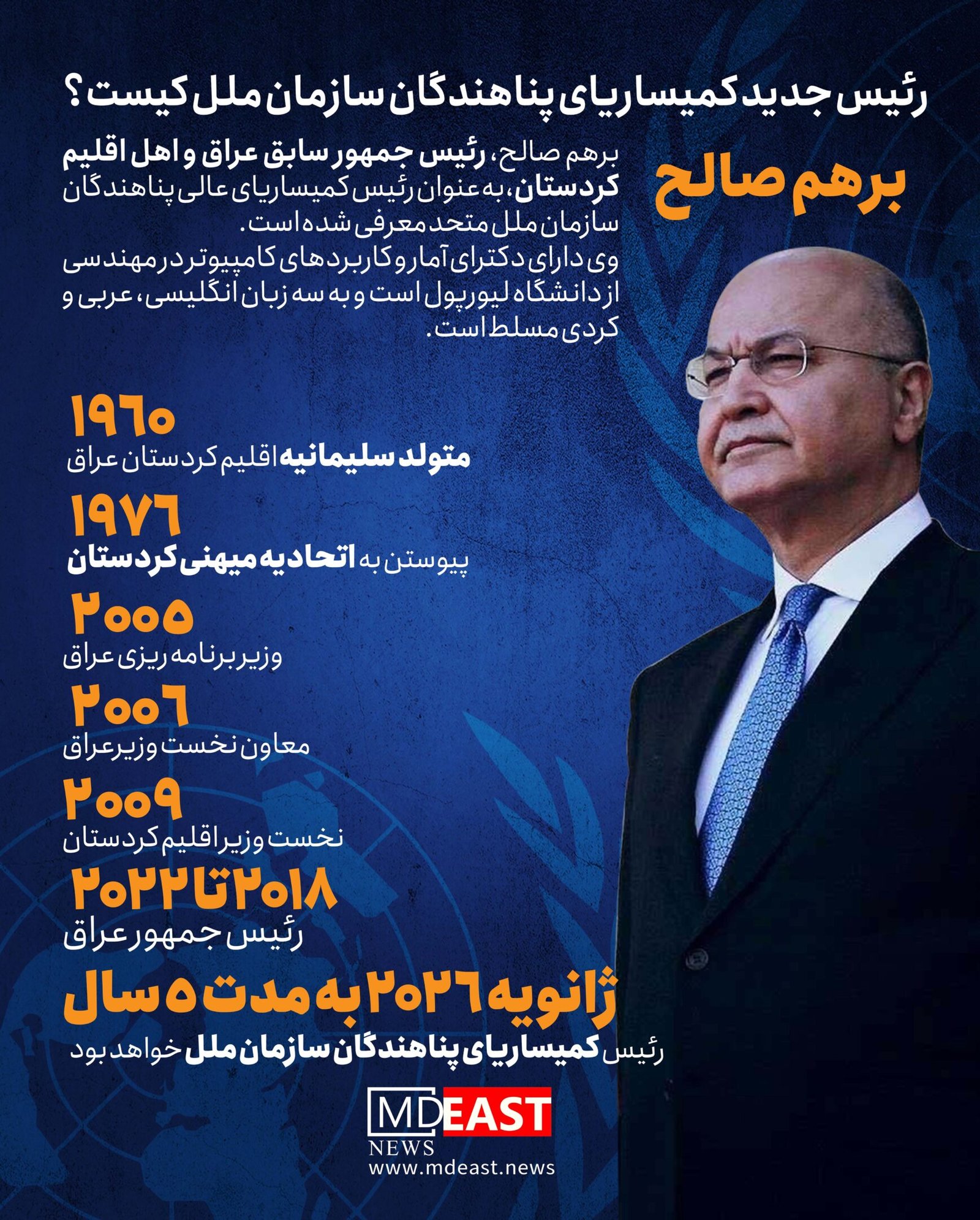 برهم صالح رئیس جدید کمیساریای پناهندگان سازمان ملل کیست؟