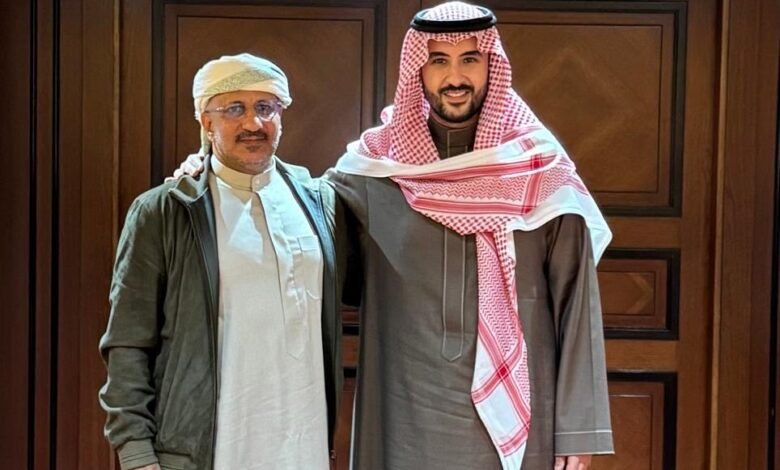 دیدار عضو شورای ریاست جمهوری یمن با وزیر دفاع عربستان