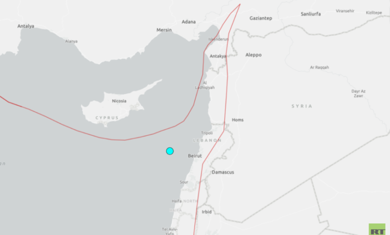 به گزارش روسیا الیوم، بر اساس اعلام مرکز ژئوفیزیک لبنان، این زمین‌لرزه نیمه‌شب رخ داده و محل آن در دریای مدیترانه، در فاصله‌ای حدود ۵۰ کیلومتری از سواحل لبنان، تعیین شده است.
