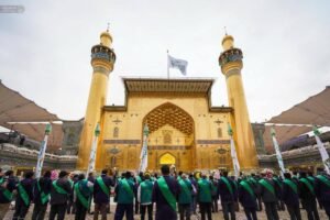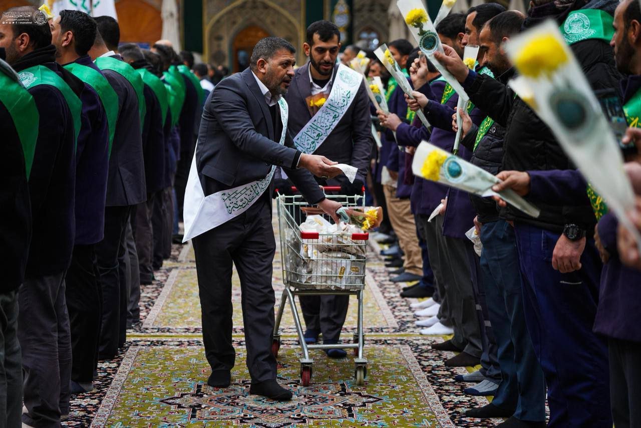 گزارش تصویری؛شادی و سرور خادمان حرم امیرالمؤمنین(ع) در روز ولادت سیدالشهدا(ع)