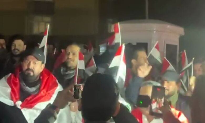 تظاهرات کنندگان شعارهای «نعم نعم للعراق»، «کلا کلا امریکا» و «کلا کلا اسرائیل» سر دادند.