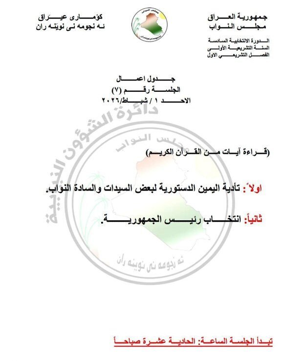 قرار بود در 27 ماه جاری، جلسه پارلمان برای انتخاب رئیس جمهور بعدی عراق برگزار شود که پارلمان عراق اعلام کرد این جلسه به تعویق افتاده است.