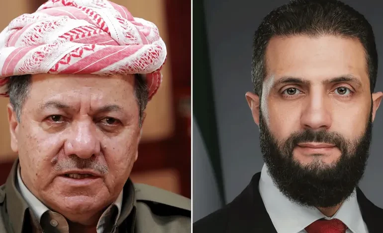 رایزنی احمد الشرع و مسعود بارزانی برای اجرای توافق دمشق و «قسد»