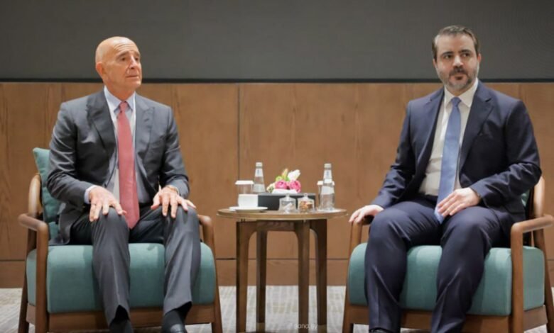 میدل ایست نیوز: اسعد الشیبانی وزیر خارجه سوریه و توماس باراک فرستاده ویژه امریکا به دمشق در ریاض دیدار کردند.