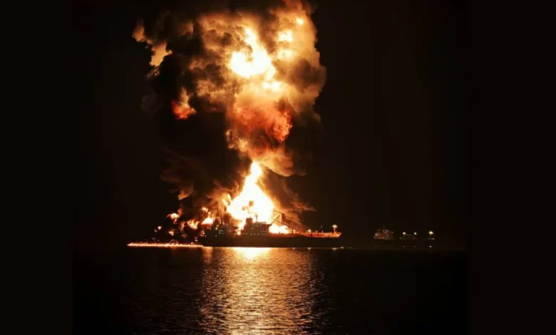 میدل ایست نیوز: گزارش رسانه ها حاکی از حمله به 2 نفتکش و سوختن آنها در آب های منطقه ای عراق است.