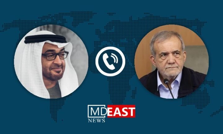 ميدل ايست نيوز: أجرى الرئيس الإيراني مسعود بزشكيان، ظهر اليوم الجمعة، اتصالًا هاتفيًا مع رئيس دولة الإمارات العربية المتحدة الشيخ محمد بن زايد آل نهيان، جرى خلاله بحث آخر التطورات الإقليمية.