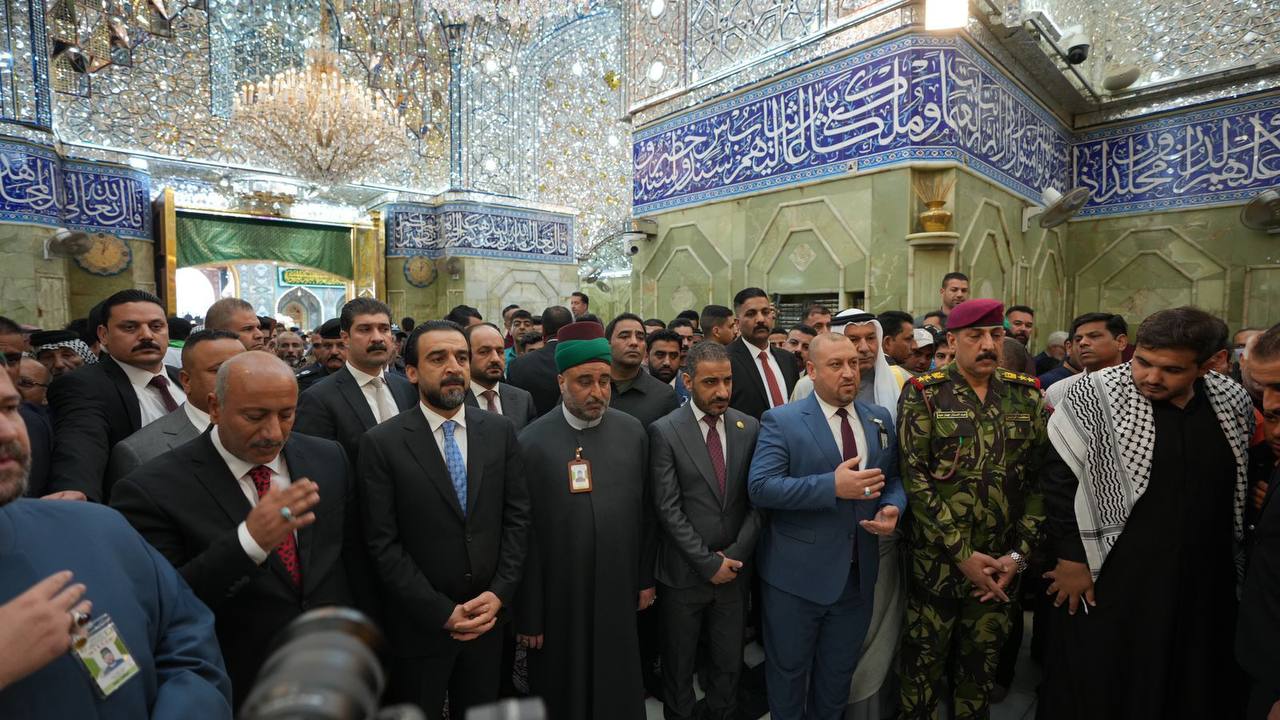 رئیس پارلمان عراق در سفر خود به کربلا، ضمن برگزاری نشستی با حضور استاندار و مدیران این استان، به زیارت حرم امام حسین (ع) مشرف شد.