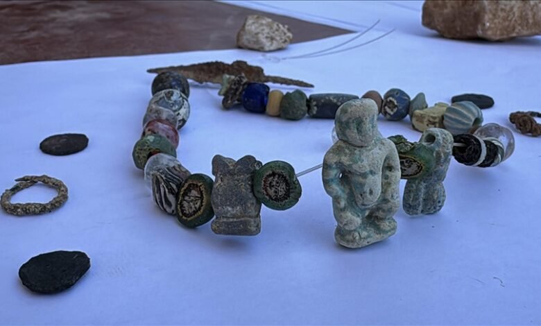 القان در ادامه اشاره کرد بررسیها حاکی از آن است که این آثار شامل یک تمثال سفالی تزئین شده که خدای مصری پاتیاکوس را به تصویر کشیده و نیز، مهرهها و تعویذ مختلف دیگر است.