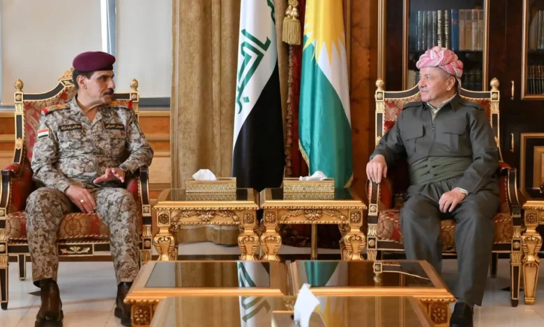 میدل ایست نیوز: مسعود بارزانی، رئیس حزب دموکرات اقلیم کردستان عراق از عبدالامیر رشید یارالله، رئیس ستاد ارتش عراق و هیئت همراه وی شامل تعدادی از افسران نظامی و امنیتی استقبال کرد.