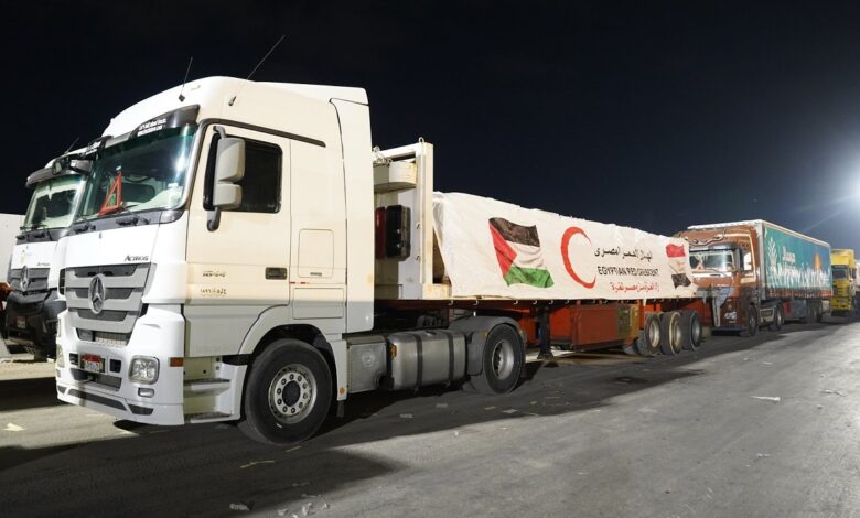سازمان هلال احمر مصر امروز یکشنبه کاروان جدیدی از کمک‌های بشردوستانه متشکل از 423 دستگاه کامیون را روانه نوار غزه کرد.