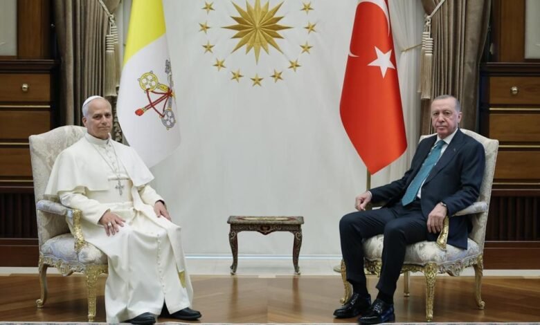 میدل ایست نیوز: رئیس جمهور ترکیه و رهبر کاتولیکهای جهان پس از دیدار دوجانبه در کاخ ریاست جمهوری ترکیه در آنکارا، ریاست نشستی را با حضور هیئتهای دو کشور برعهده گرفتند.