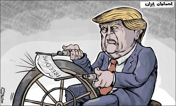 کاریکاتور؛ترامپ در حال قربانی کردن مردم ایران برای سیاستهای جنگ طلبانه با ادعای حمایت از آزادی