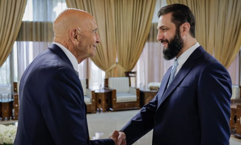 رئیس دوره انتقالی سوریه امروز در دمشق میزبان «توماس باراک»، فرستاده ویژه امریکا در امور سوریه بود تا در خصوص آینده سیاسی این کشور با یکدیگر رایزنی کنند.