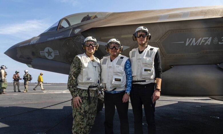فرستاده ویژه امریکا به خاورمیانه و داماد رئیس جمهور امریکا از ناو هواپیمابر آبراهام لینکلن بازدید کردند.