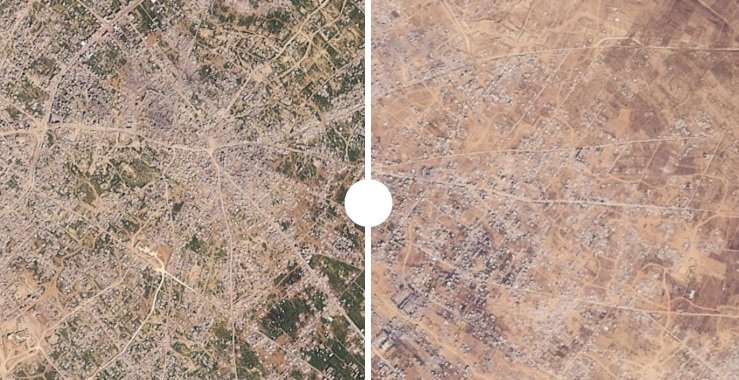 میدل ایست نیوز: تصاویر ماهوارهای جدید نشان میدهد نیروهای اشغالگر اسرائیلی همچنان به عملیات گسترده تخریب منازل مسکونی فلسطینیان در منطقه بنیسهیلا در شرق شهر خان يونس در جنوب نوار غزه ادامه میدهند.