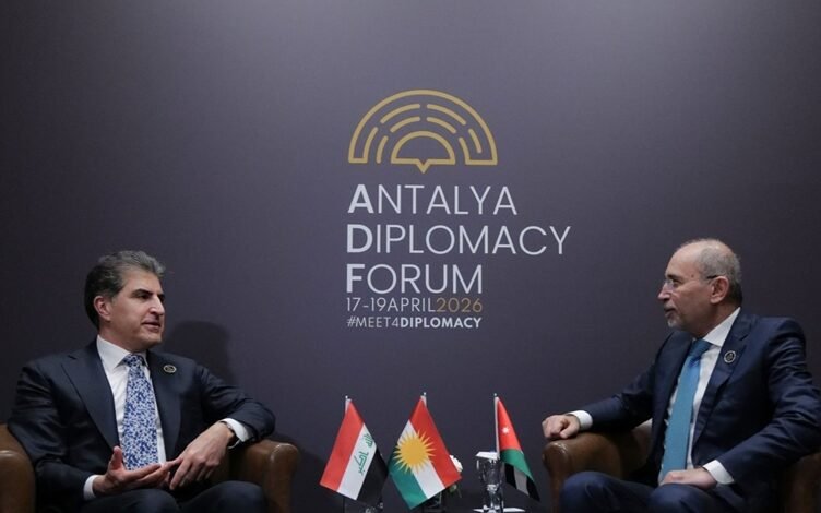 میدل ایست نیوز: نچیروان بارزانی رئیس اقلیم کردستان عراق و ایمن الصفدی وزیر خارجه اردن در آنتالیا دیدار کردند.